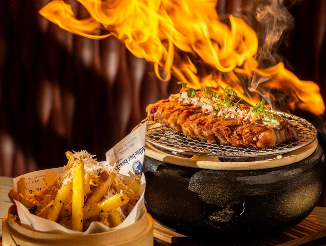 Witness the fusion of Japanese Mastery and Peruvian fire. Our Chef ignites the flame tableside, searing A5 Wagyu to perfection as the marbling melts into rich indulgence along with Truffle Parmesan Fries. A bold Nikkei ritual where fire meets finesse.